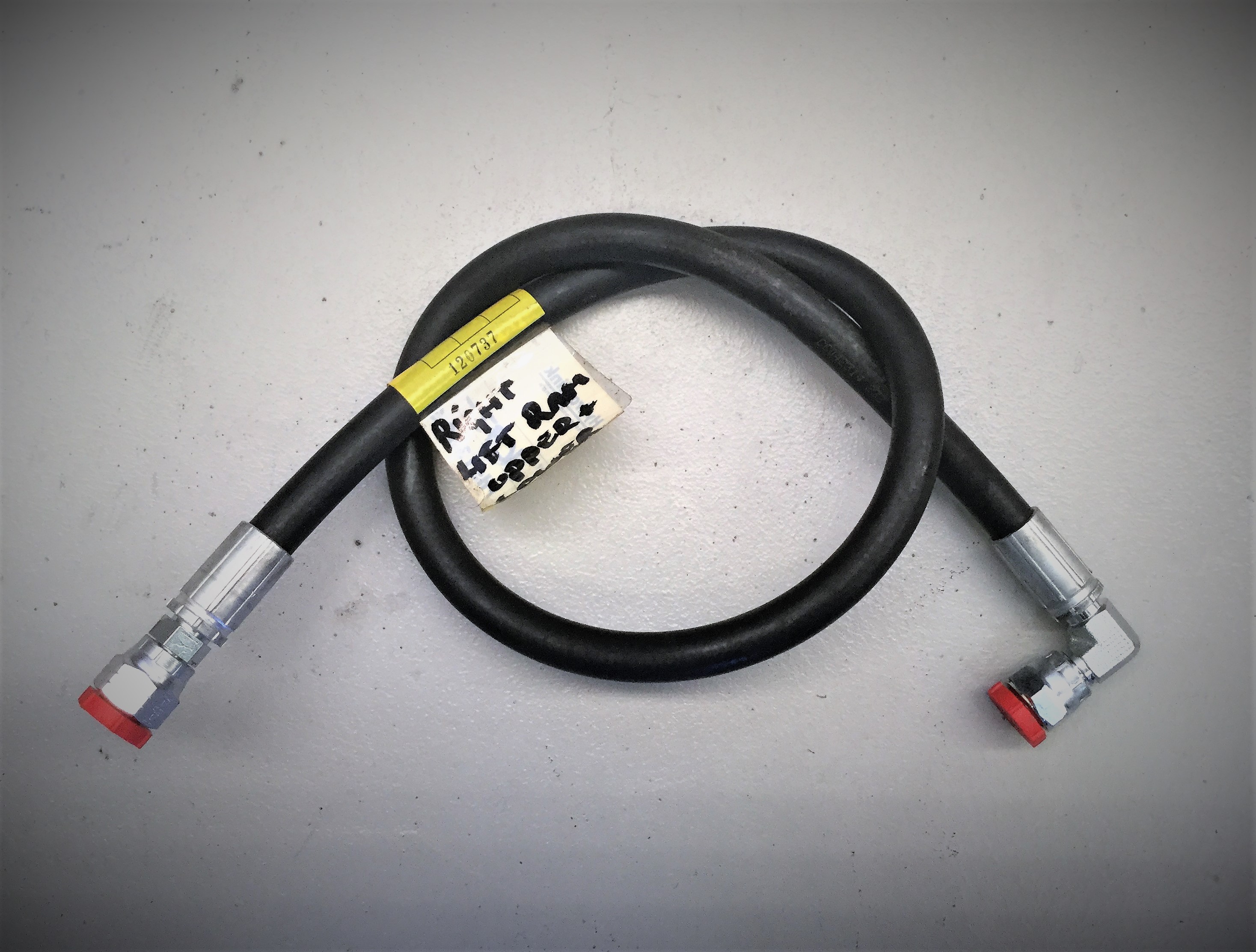This is the upper & lower  of the 1/4” hoses connecting the right hand lift ram to the control bank on a Dingo 950 and k9-3 machines.